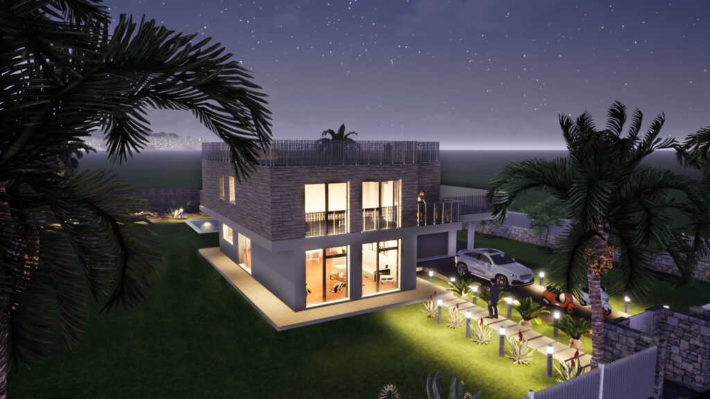 Sto progettando una villa singola per un commitente privato ad Arzachena (SS) in Sardegna. Ho creato, dunque, ad hoc dei rendering 3D degli interni e dell’esterno, compreso di giardino, per una più completa presentazione del progetto finale. (Arzachena, in corso)